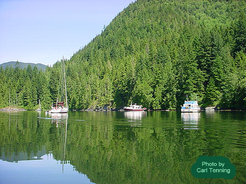 ![]() Boats Anchored in Matilpi Awaiting Slack Current in Chatham Channel |