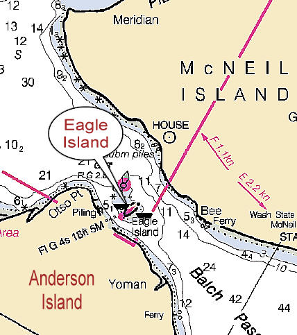 Eagle Island is located in Balsh Passage, between McNeil Island and Anderson Island.