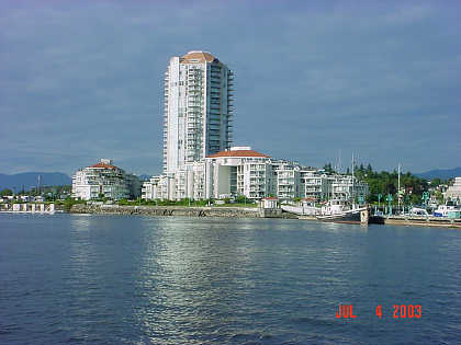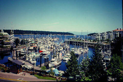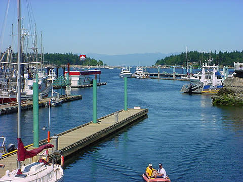 Nanaimo is located on the east coast of Vancouver Island essentially 33 nautical miles across the Strait of Georgia from Vancouver B.C. on the mainland. The entrance to Nanaimo Inner Harbour is at 49° 10' 12.21" N, 123° 55' 58.95" W.